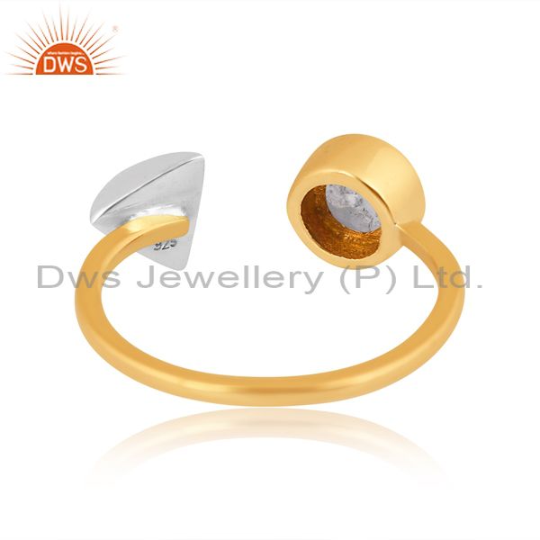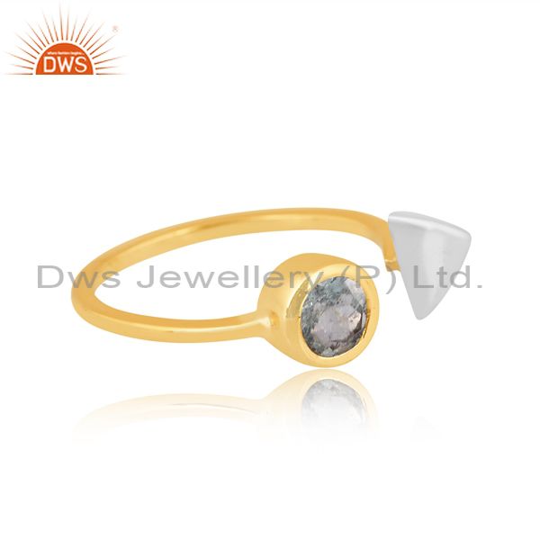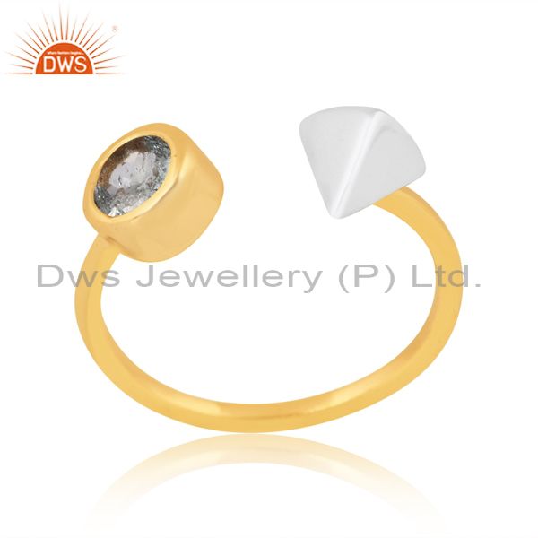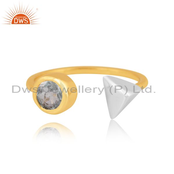 Premium Aquamarine Cut Round Brass Gold & White Ring