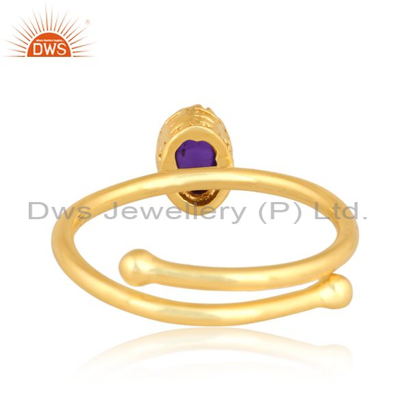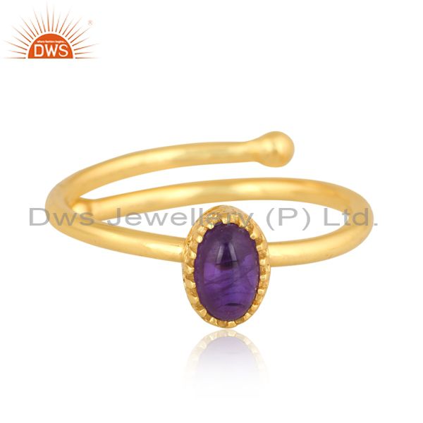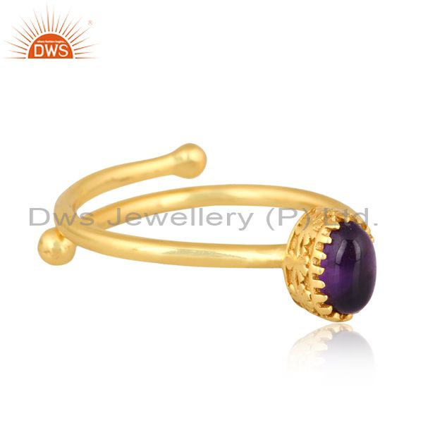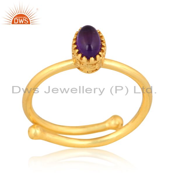 Premium Brass Gold Ring With Amethyst Cabochon Oval Stone