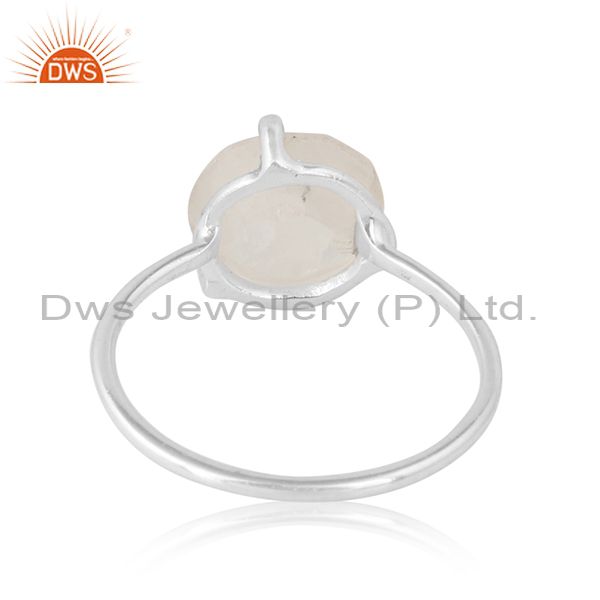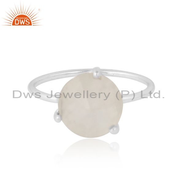 Prong Set 925 Sterling Fine Silver Rainbow Moonstone Ring Jewelry