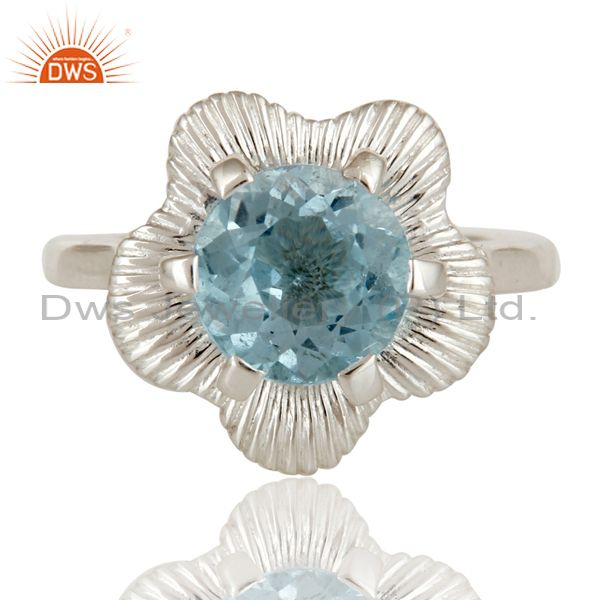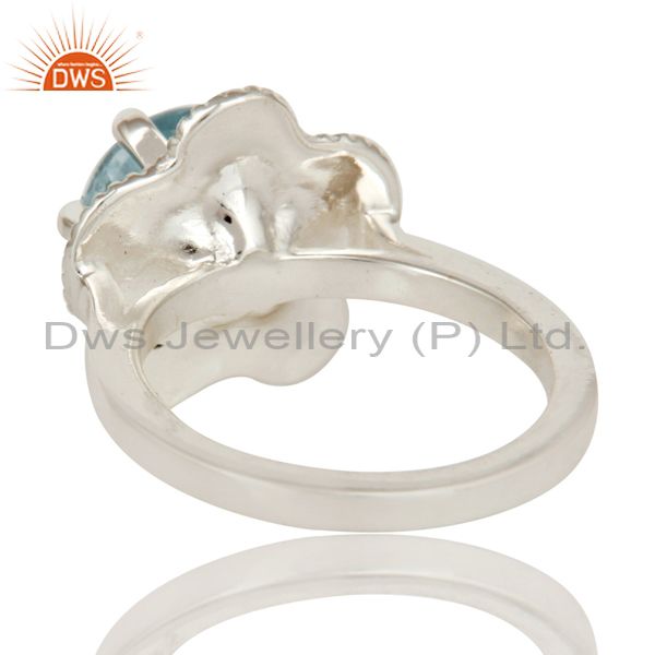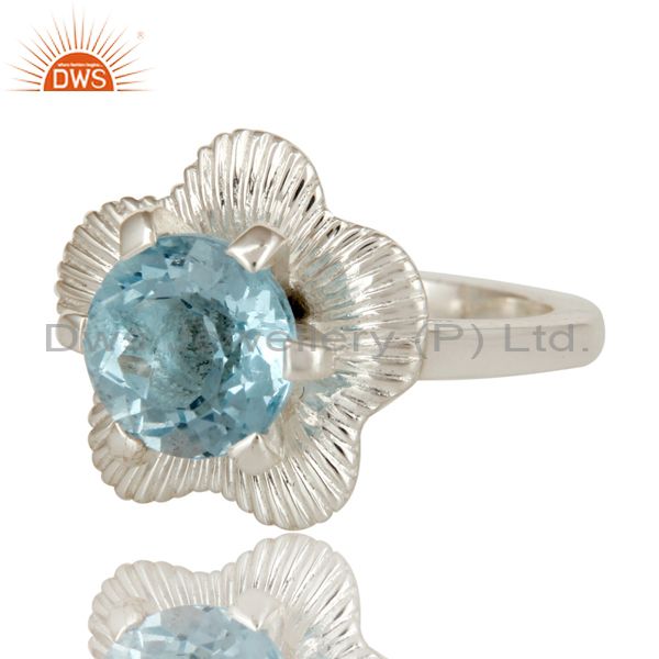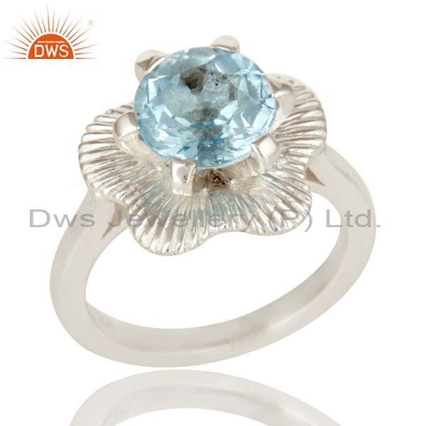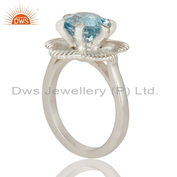 Prong Set Blue Topaz Gemstone Cocktail Ring In Sterling Silver