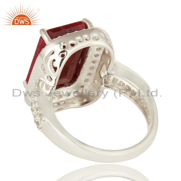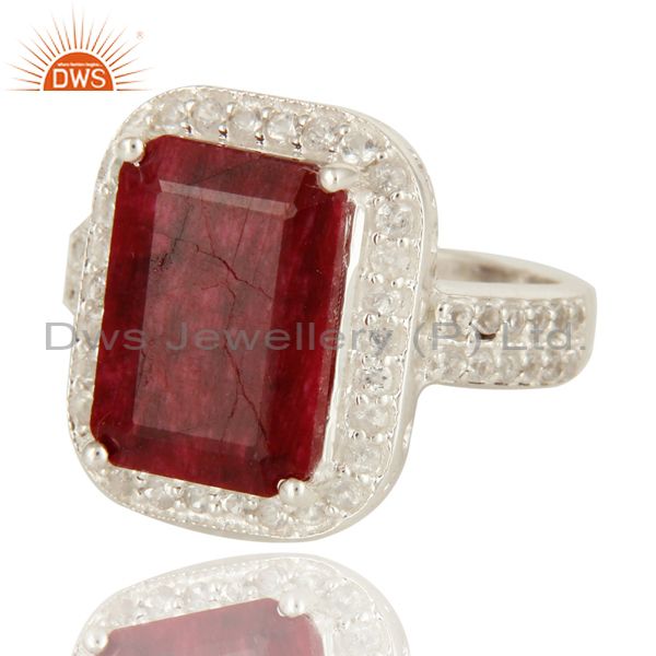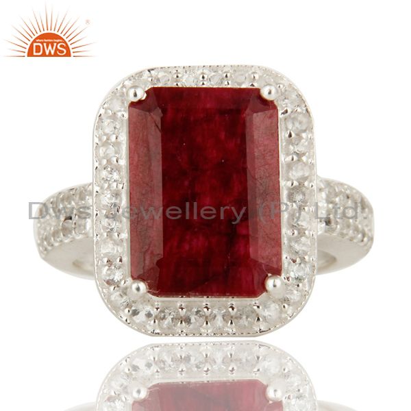 Prong Set Dyed Ruby Red Corundum And White Topaz Sterling Silver Cocktail Ring