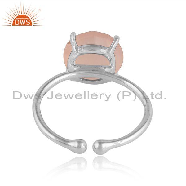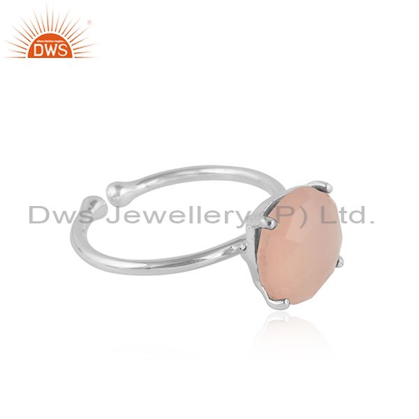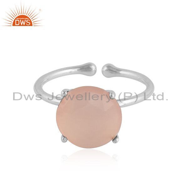 Prong Set Rose Chalcedony Gemstone Sterling Silver Ring Jewelry