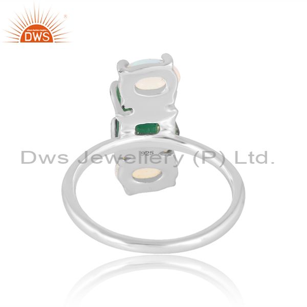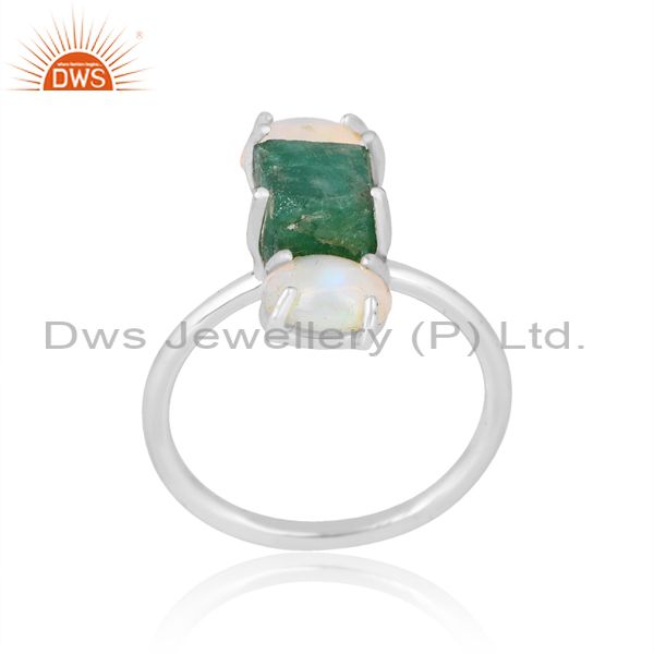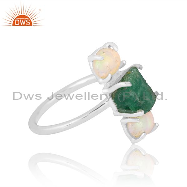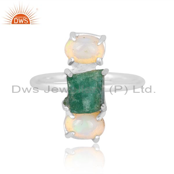 Prong Setting Emerald And Ethiopian Opal Ring Unisex In Wire