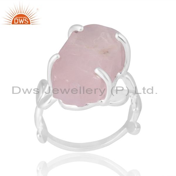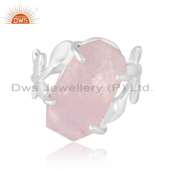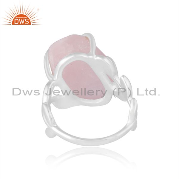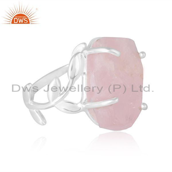 Prong Setting Silver Ring Semicircle Band With Rose Quartz