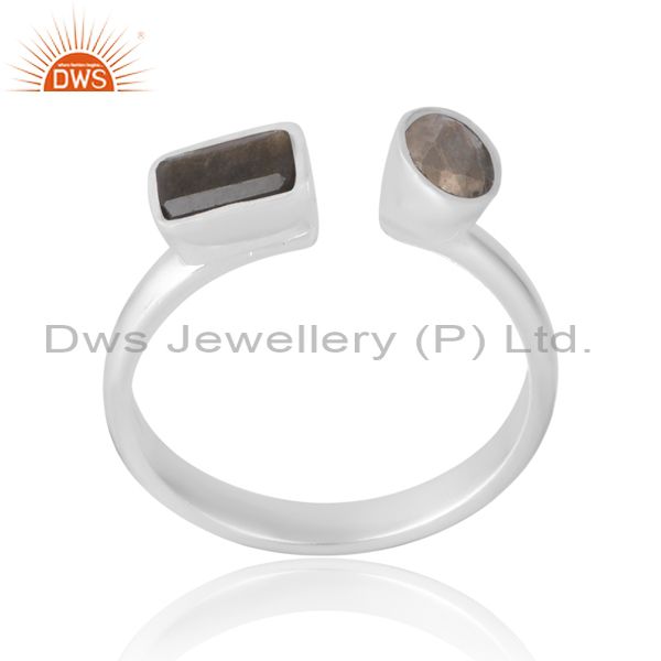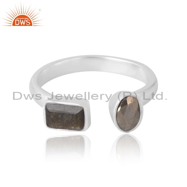 Pyrite And Obsidian Adjustable Half Band Silver Valentines