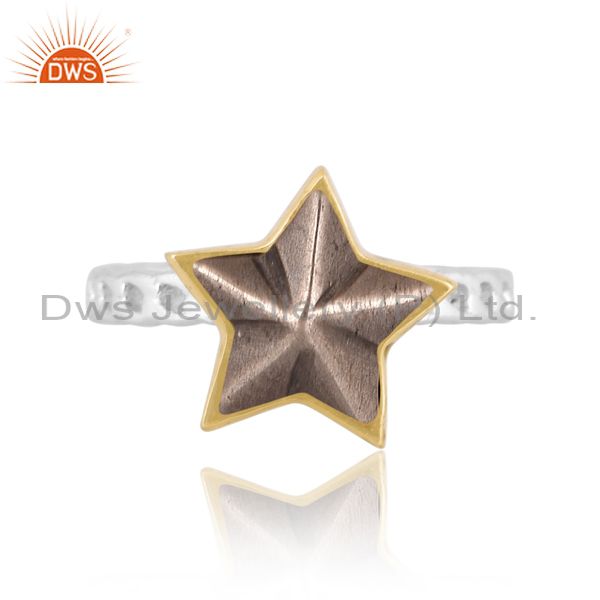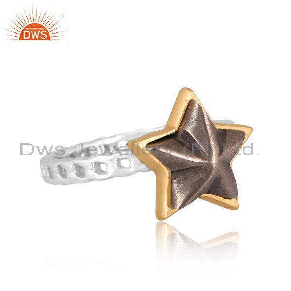 Pyrite Set Gold On Fine Sterling Silver Classic Star Ring