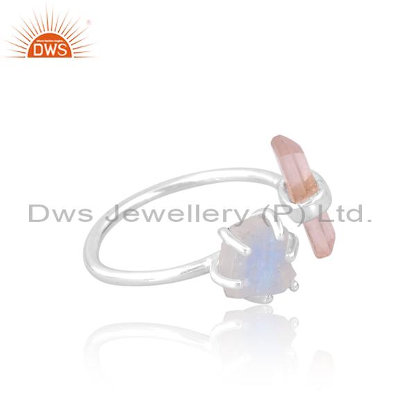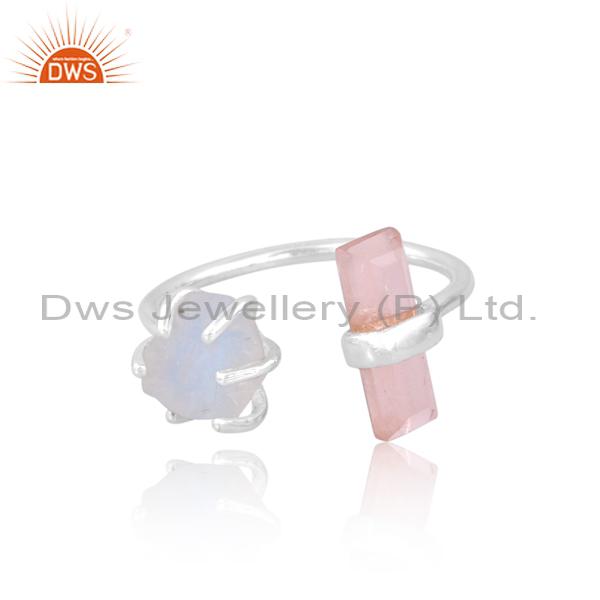 Rainbow Moon & Rose Quartz Engagement Ring