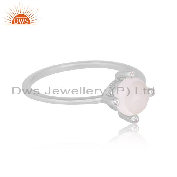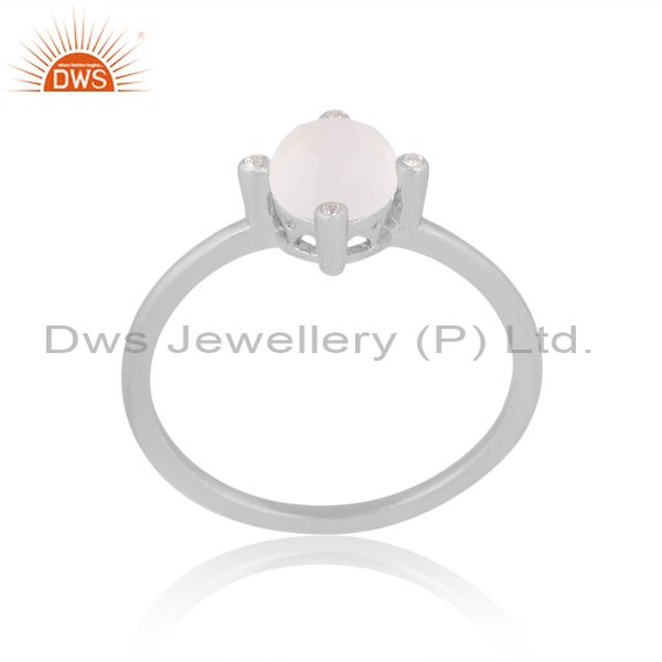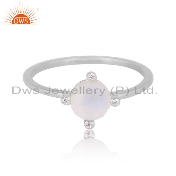 Rainbow Moon Stone And Cz Set Classic Fine 925 Silver Ring
