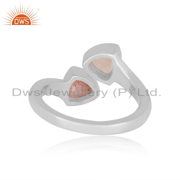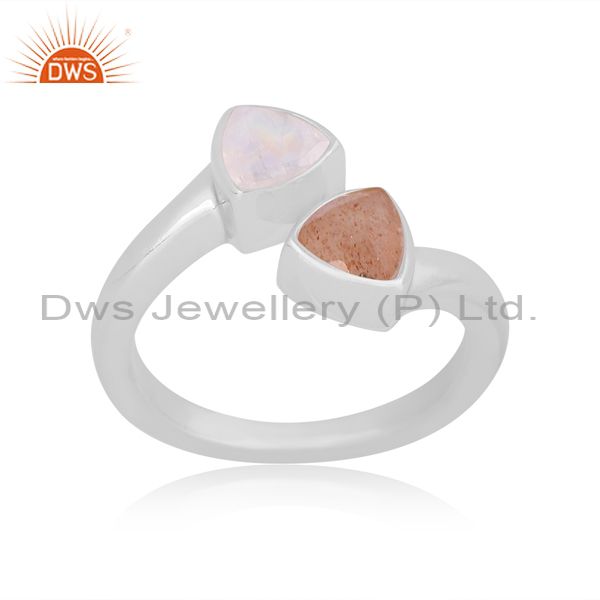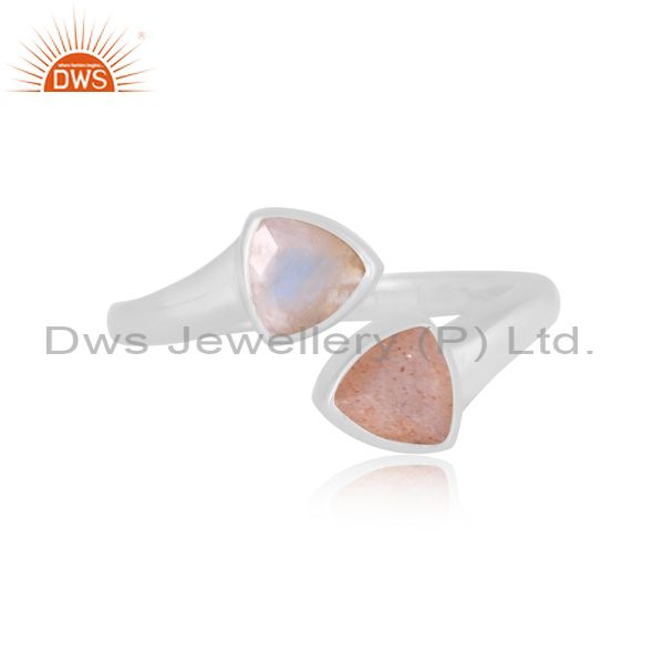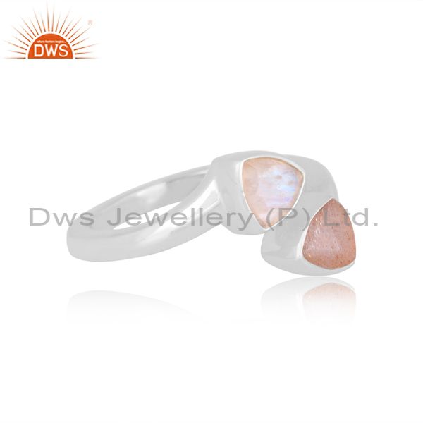 Rainbow Moon Stone And Peach Moon Stone Set Fine Silver Ring