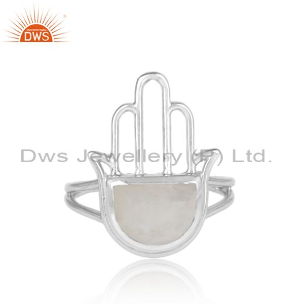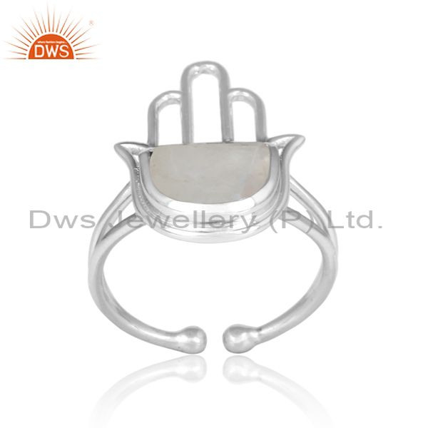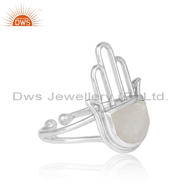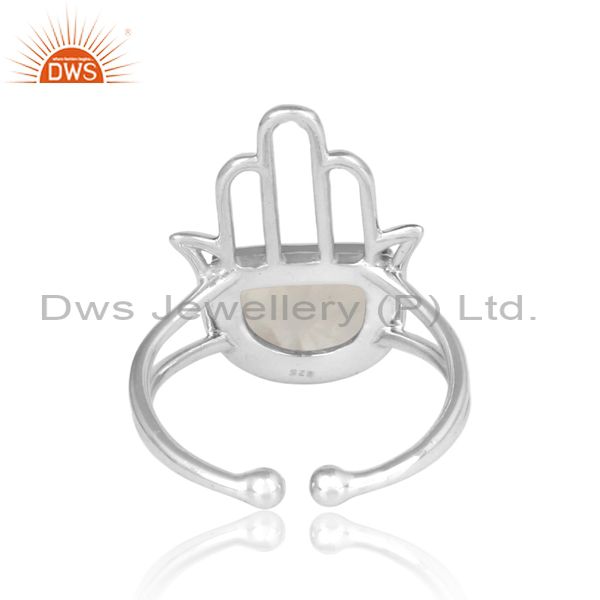Rainbow Moon Stone Fine Sterling Silver Hamsa Ring