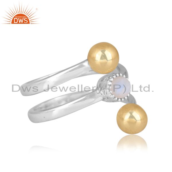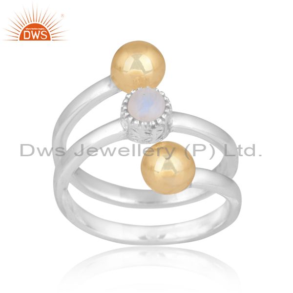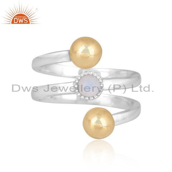 Rainbow Moon Stone Gold On Fine Silver Handmade Twisted Ring