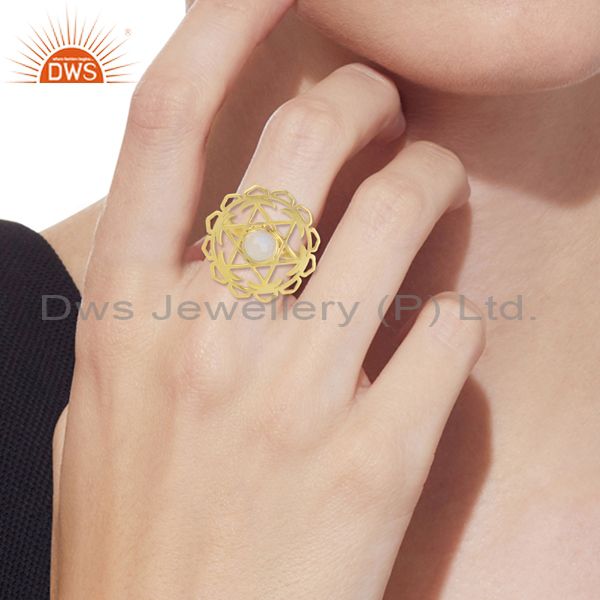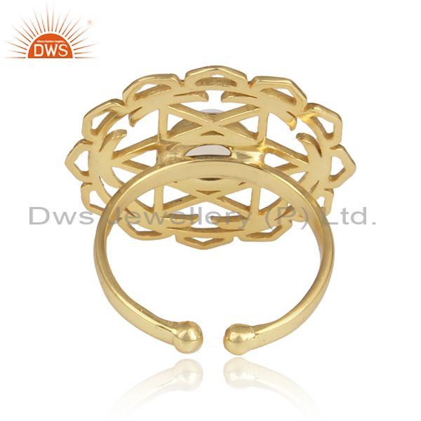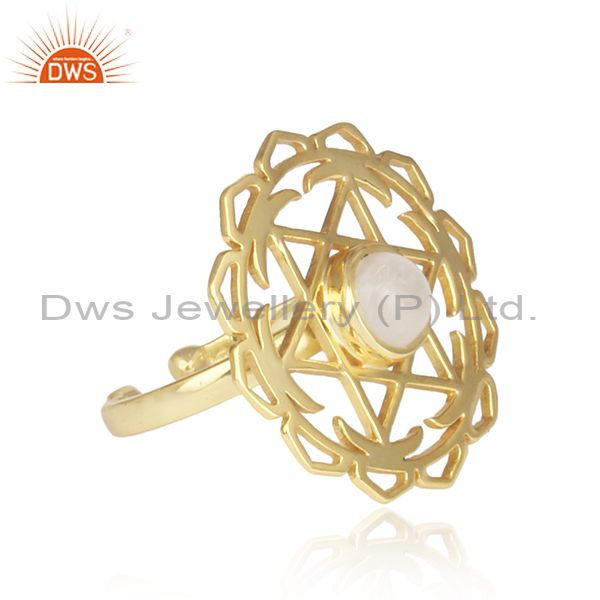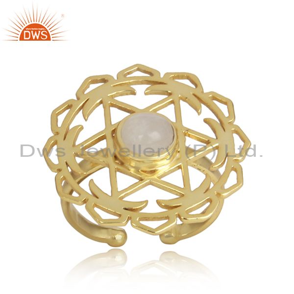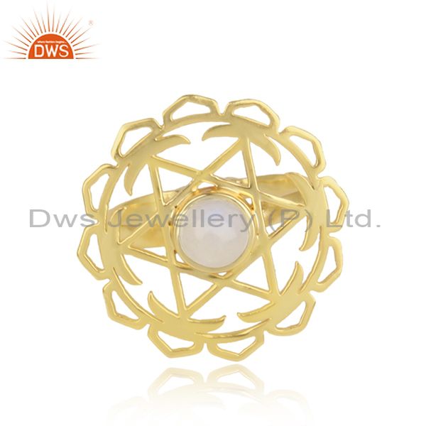 Rainbow Moon Stone Gold On Silver Handmade Statement Ring