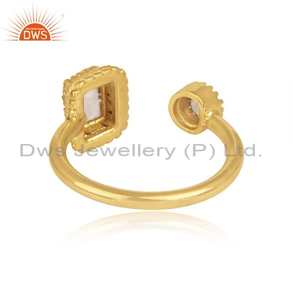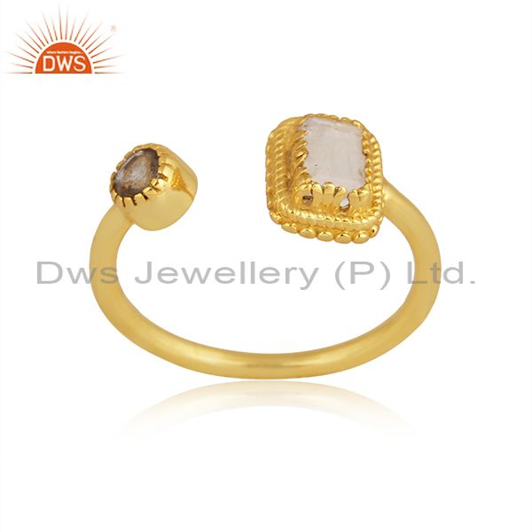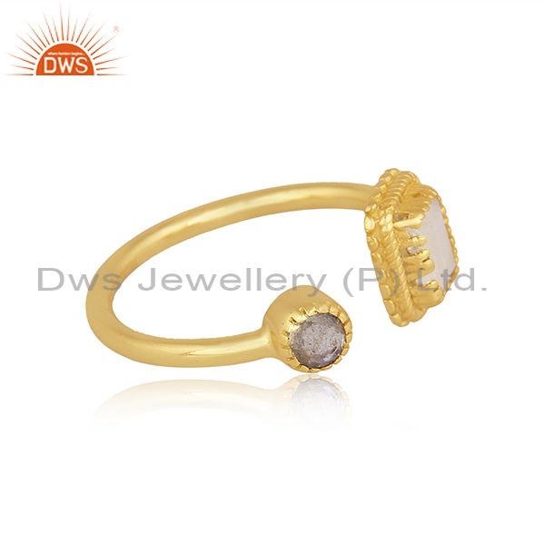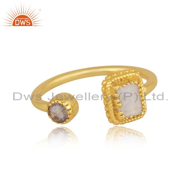 Rainbow Moon Stone, Labradorite Set Gold On Silver Open Ring