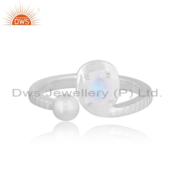 Rainbow Moon Stone Set Classy Handmade Fine 925 Silver Ring