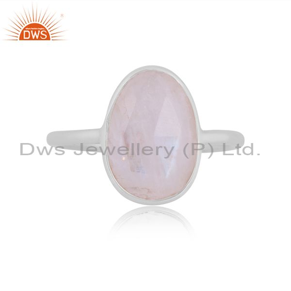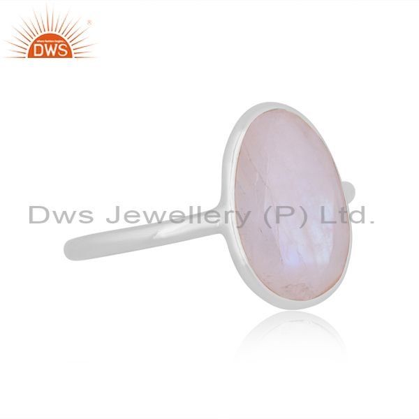 Rainbow Moon Stone Set Fine 925 Silver Abstract Design Ring