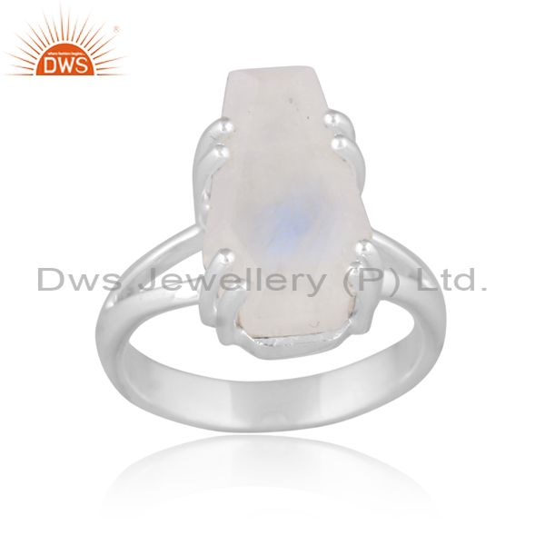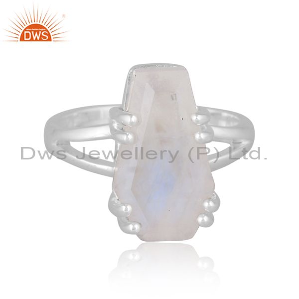 Rainbow Moon Stone Set Fine 925 Sterling Silver Classic Ring
