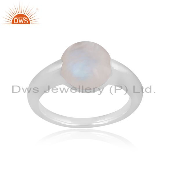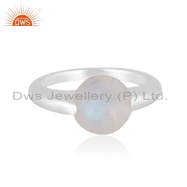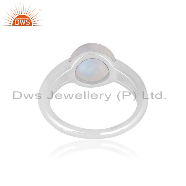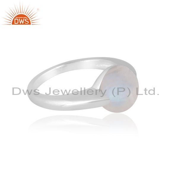 Rainbow Moon Stone Set Fine Silver Handhammered Classic Ring