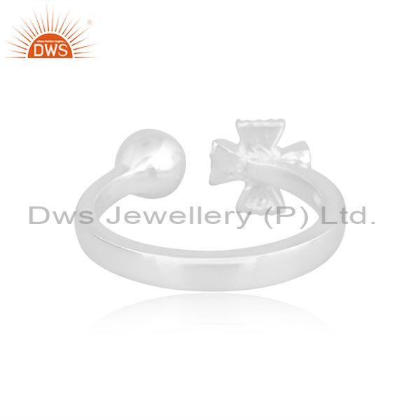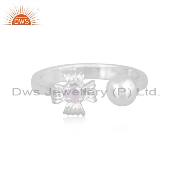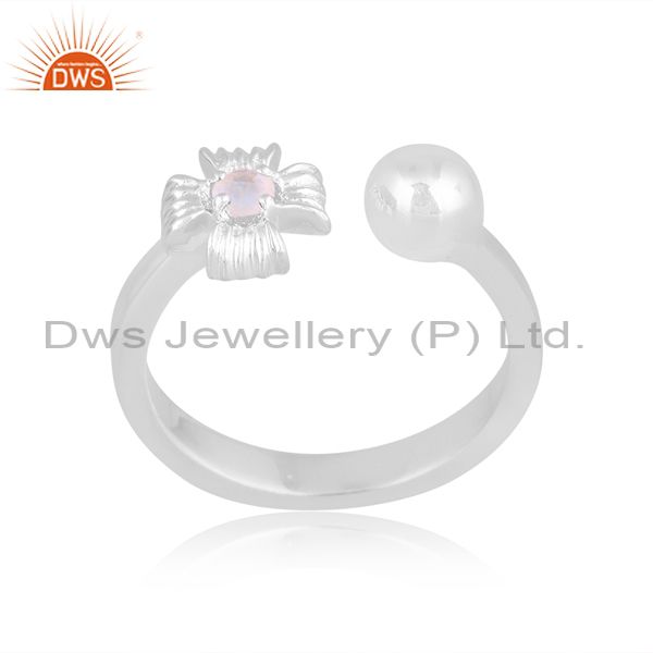 Rainbow Moon Stone Set Fine Silver Handmade Open Fancy Ring