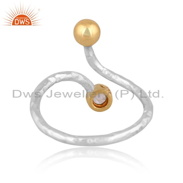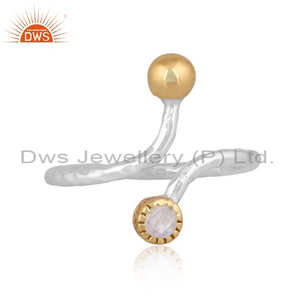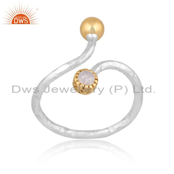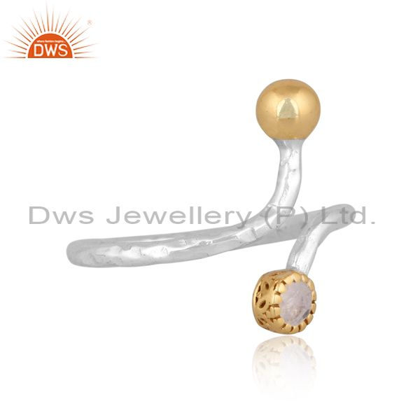 Rainbow Moon Stone Set Gold On 925 Silver Handhammered Ring