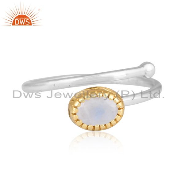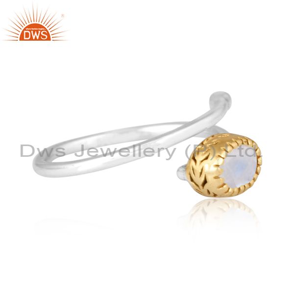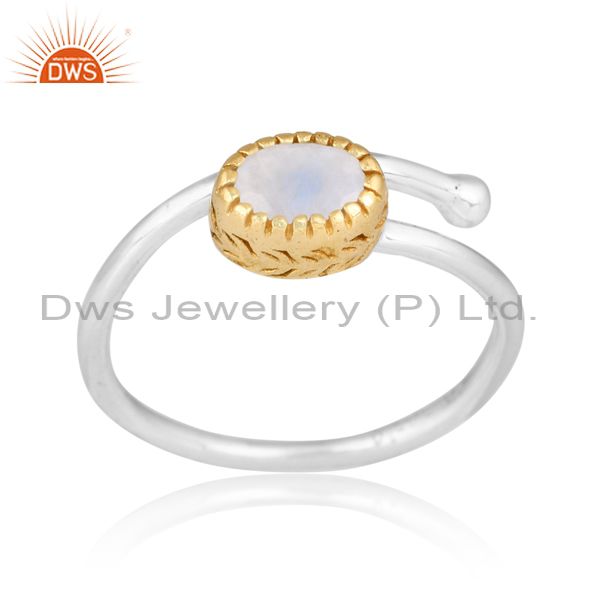 Rainbow Moon Stone Set Gold On Fine 925 Silver Handmade Ring