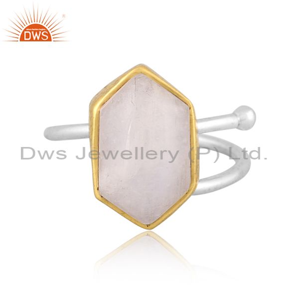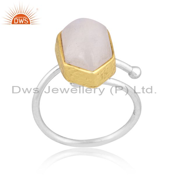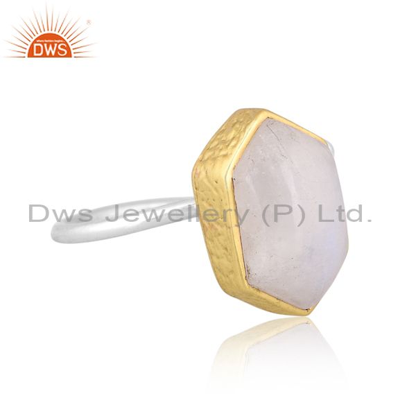 Rainbow Moon Stone Set Gold On Fine 925 Sterling Silver Ring
