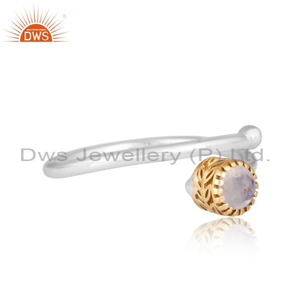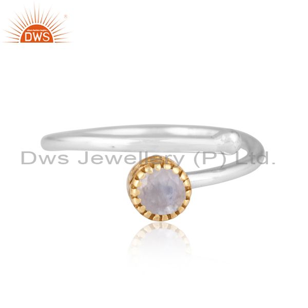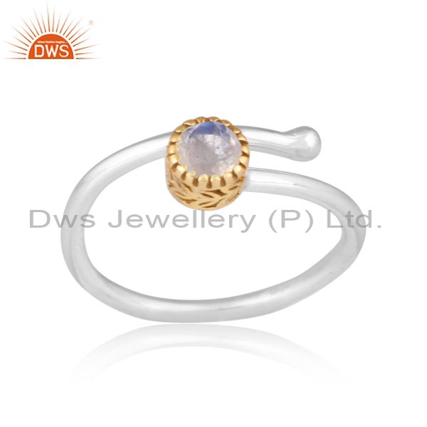 Rainbow Moon Stone Set Gold On Fine Silver Crown Twist Ring