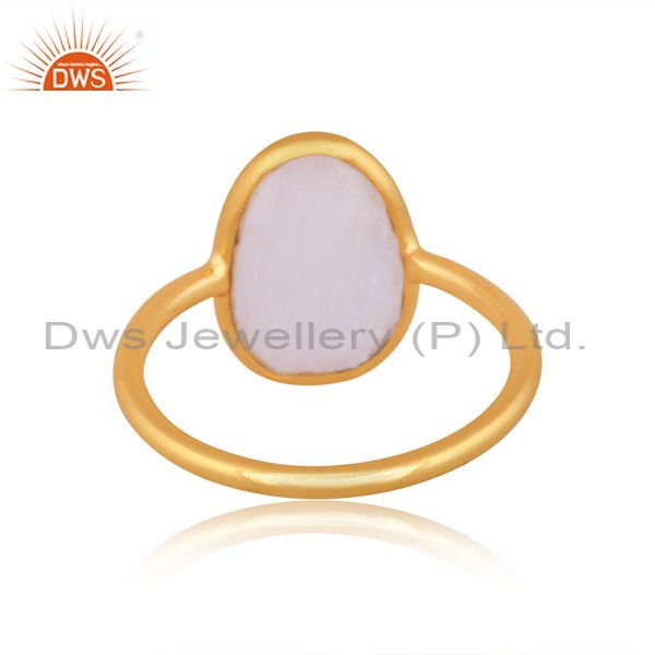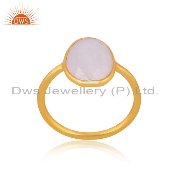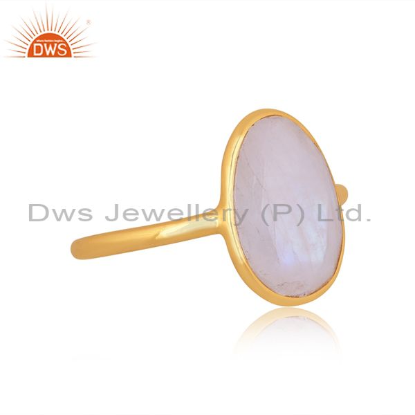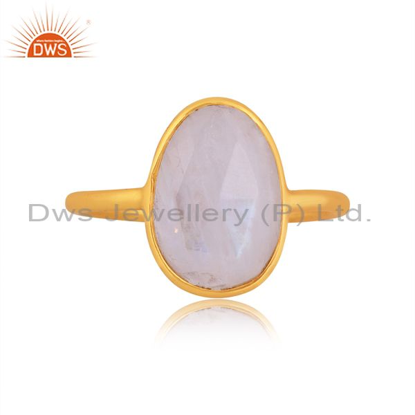 Rainbow Moon Stone Set Gold On Silver Abstract Design Ring