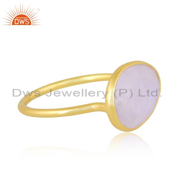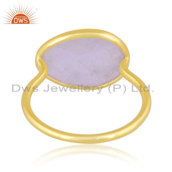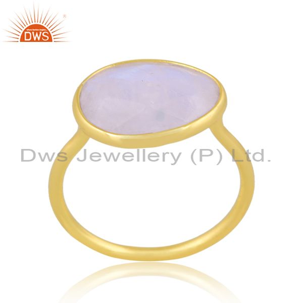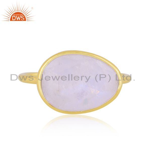 Rainbow Moon Stone Set Gold On Silver Handmade Designer Ring