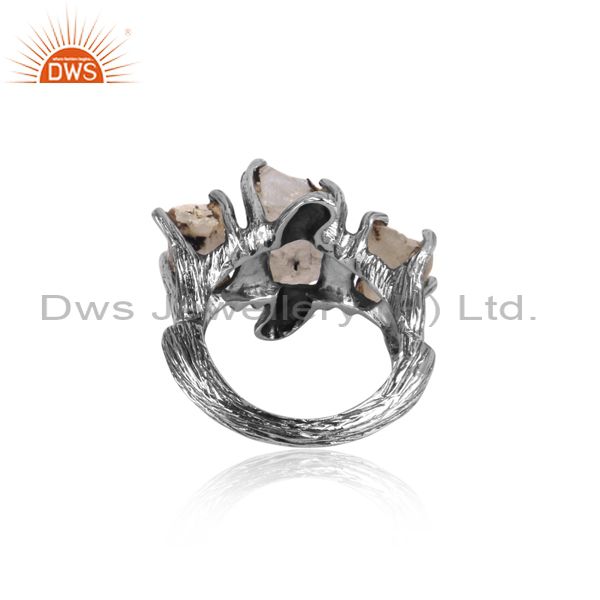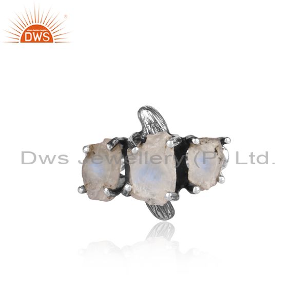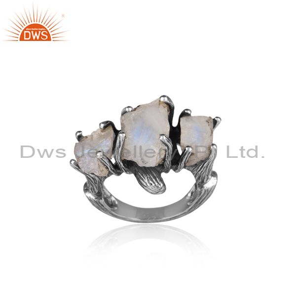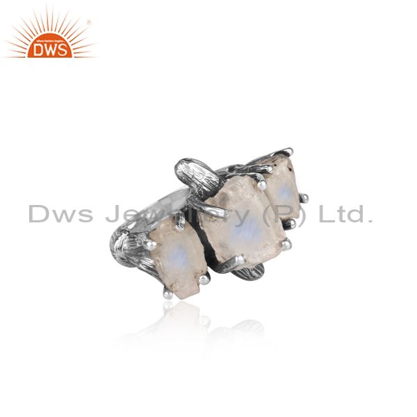 Rainbow Moon Stone Set Oxidized 925 Silver Designer Ring