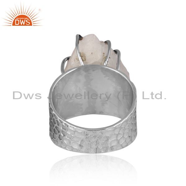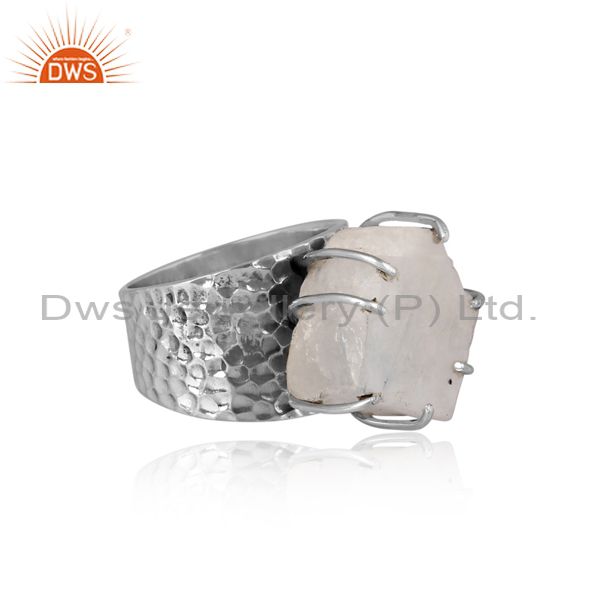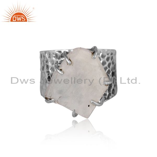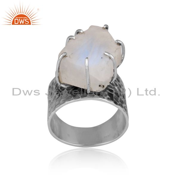 Rainbow Moon Stone Set Oxidized 925 Silver Handhammered Ring