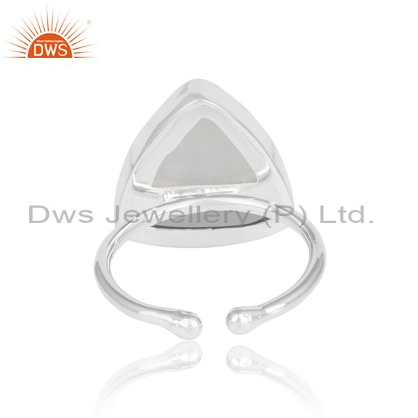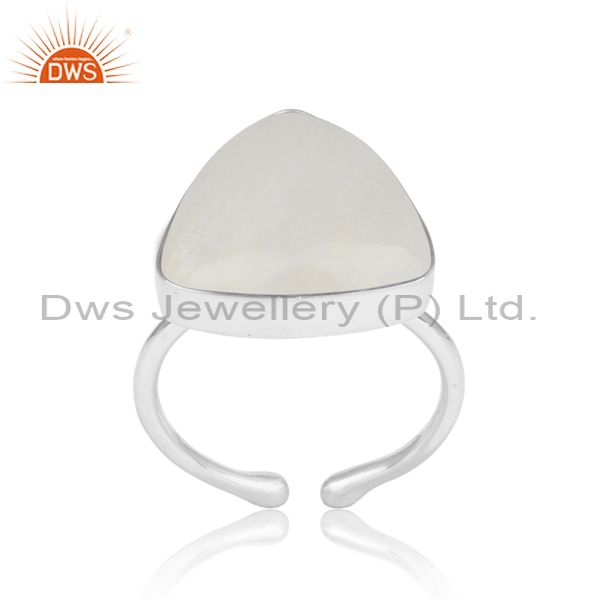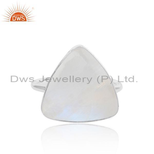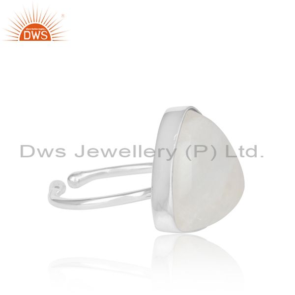Rainbow Moon Stone Set White Silver Handmade Statement Ring