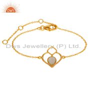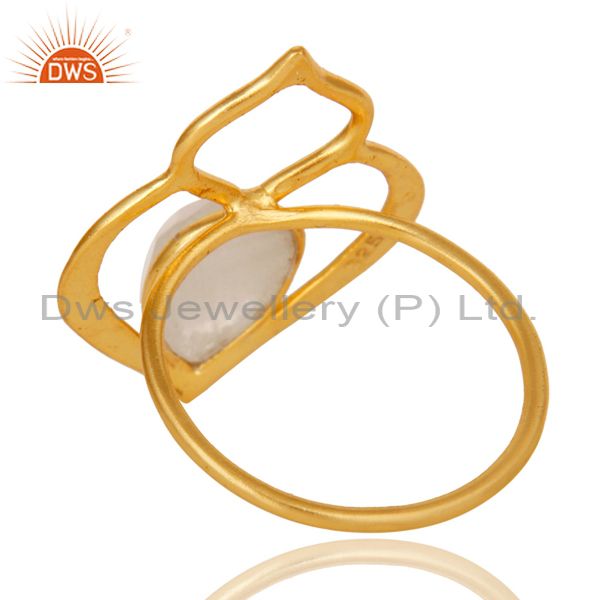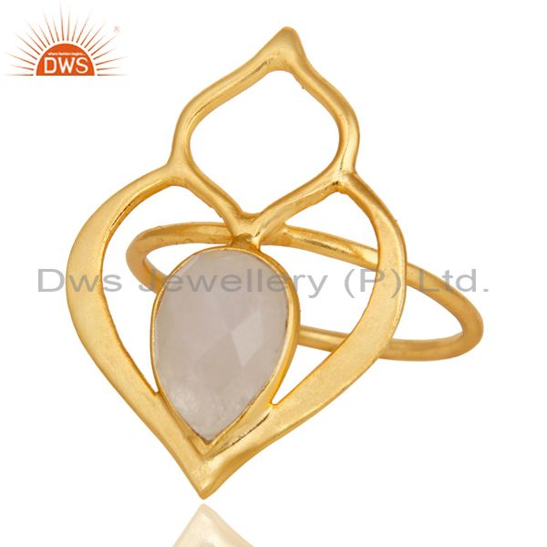 Rainbow Moonstone 18K Gold Plated Sterling Silver Art Deco Style Designer Ring