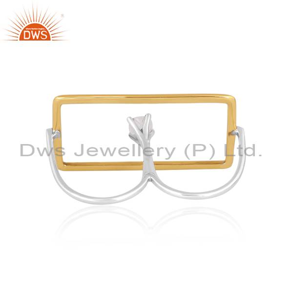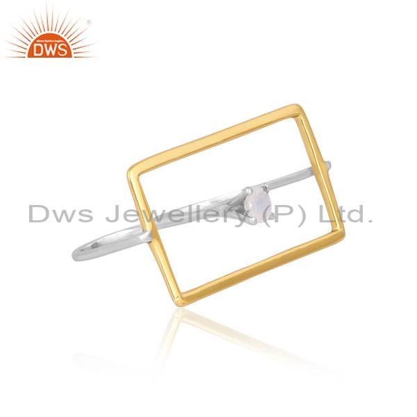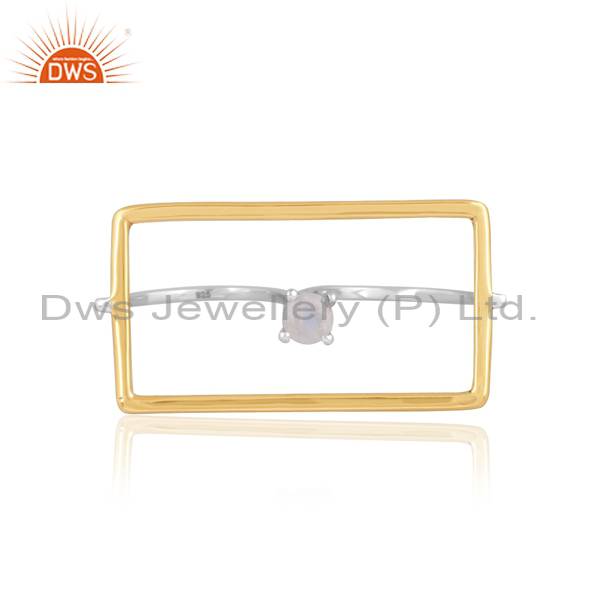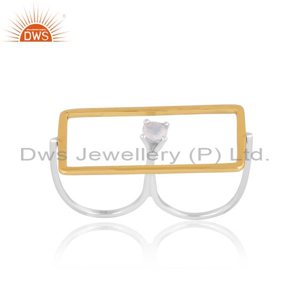 Rainbow Moonstone 2-Finger Silver Ring With Brass Patti