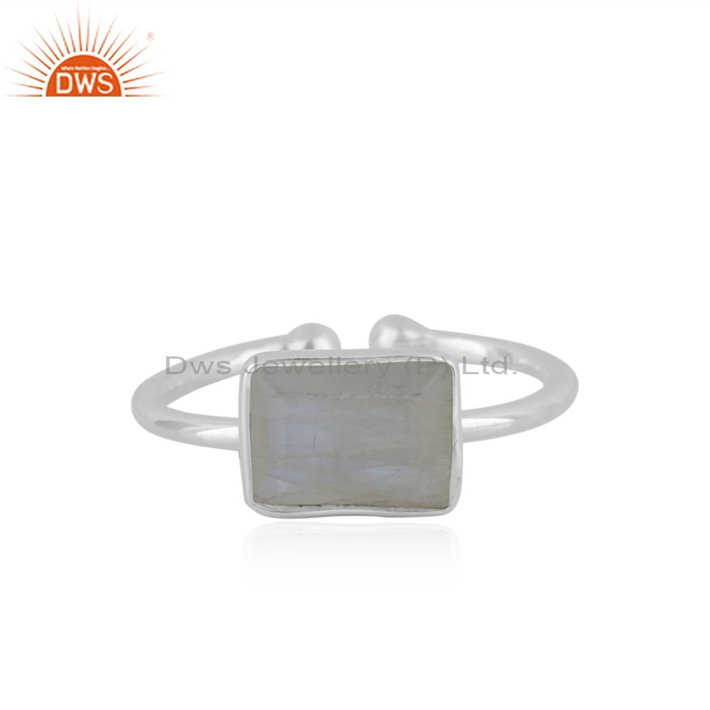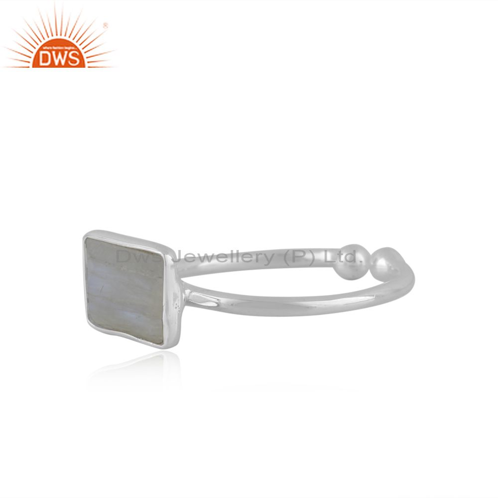 Rainbow Moonstone 925 Sterling Silver Adjustable Gemstone Ring Jewelry