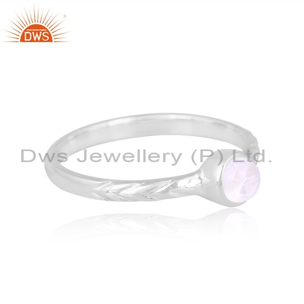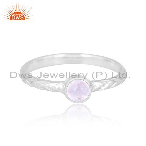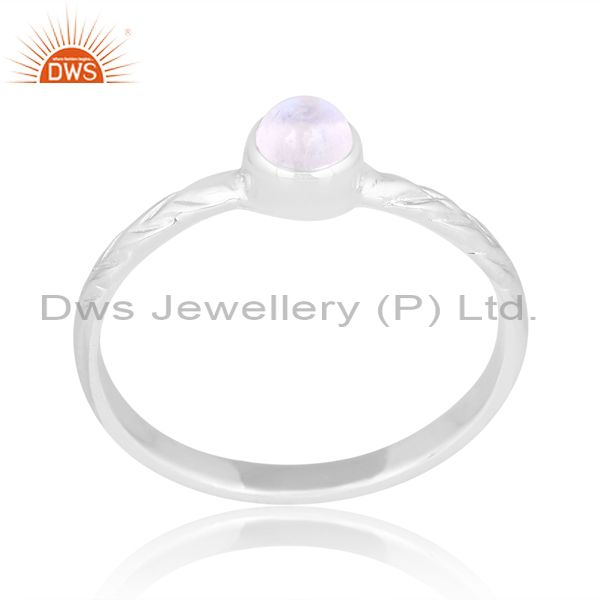 Rainbow Moonstone Cross Bar Texture Sterling Silver Ring