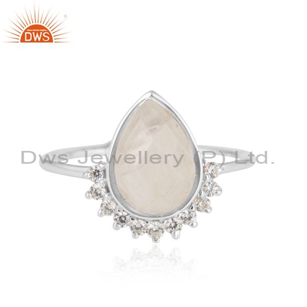 Rainbow Moonstone CZ Gemstone Handmade 925 Sterling Silver Rings