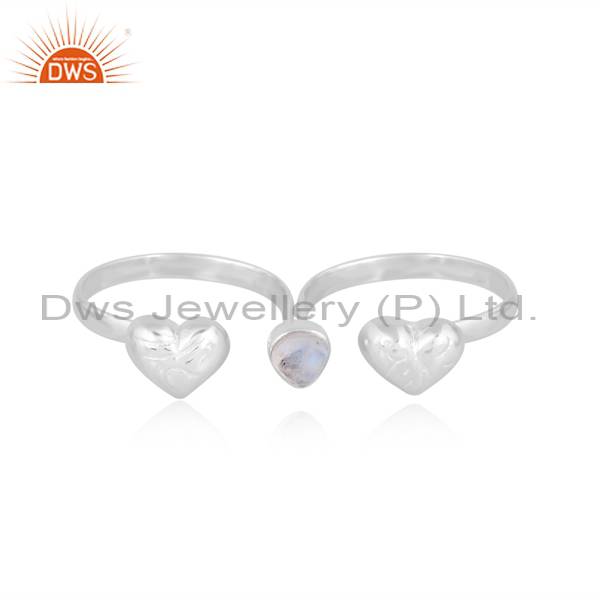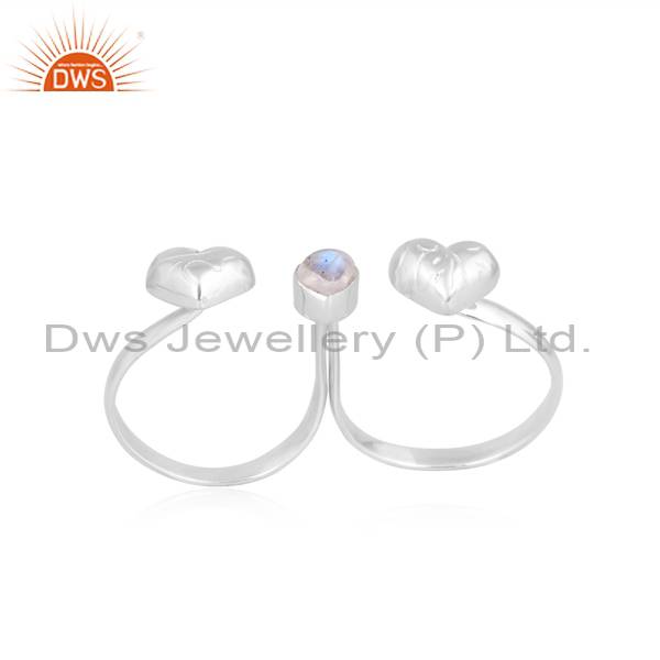 Rainbow Moonstone Double Finger Ring: Openable Design