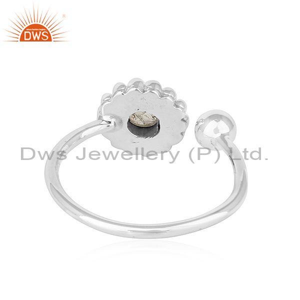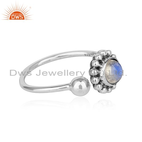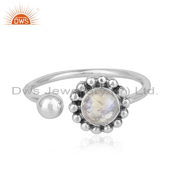 Rainbow Moonstone Flower Designer Adjustable Oxidized Silver Rings
