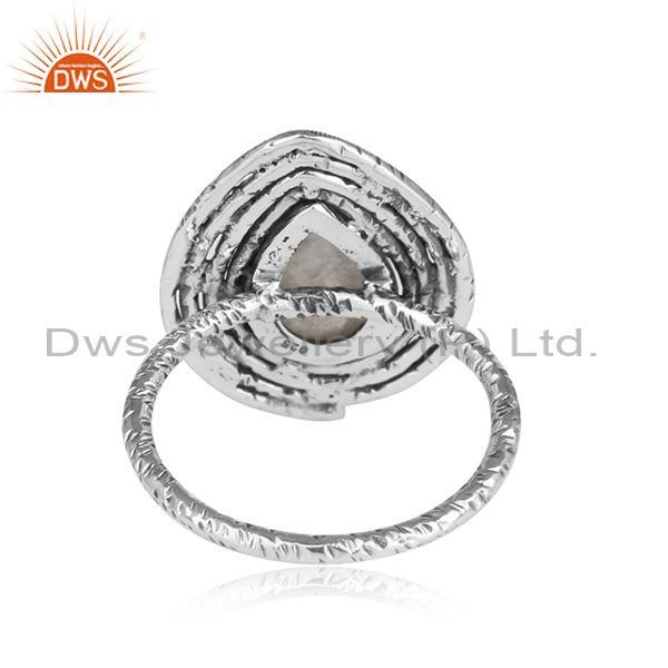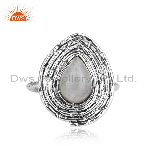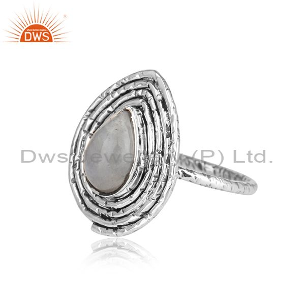 Rainbow Moonstone Gemstone Oxidized 925 Silver Handmade Rings