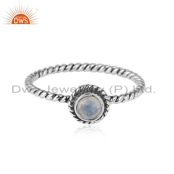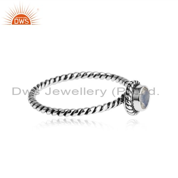 Rainbow Moonstone Gemstone Womens Twisted Design Silver Rings
