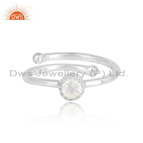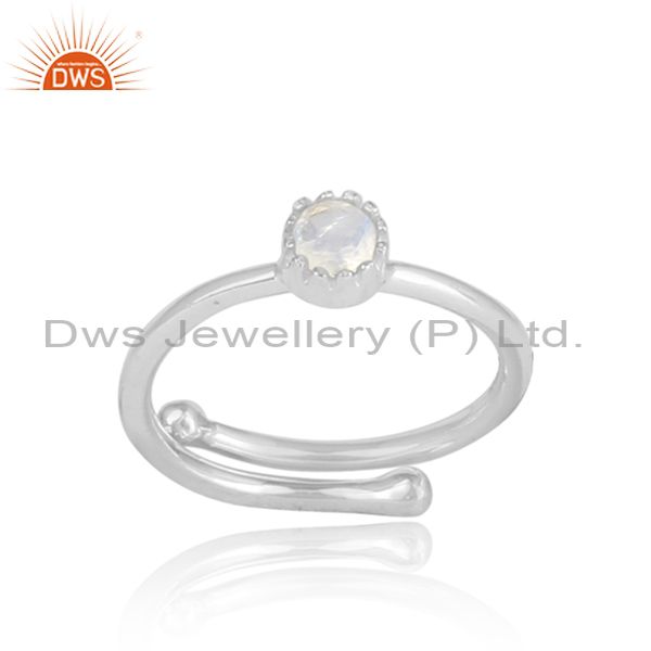 Rainbow Moonstone Set In Crown Shaped 925 Silver Ring