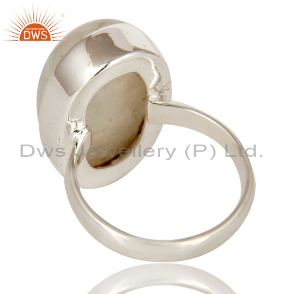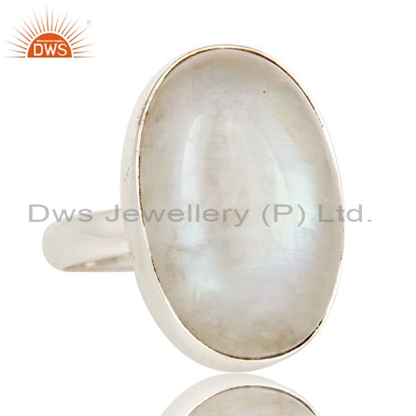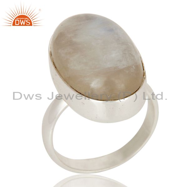 Rainbow Moonstone Simple Bezel Set Solid 925 Silver Gemstone Ring
