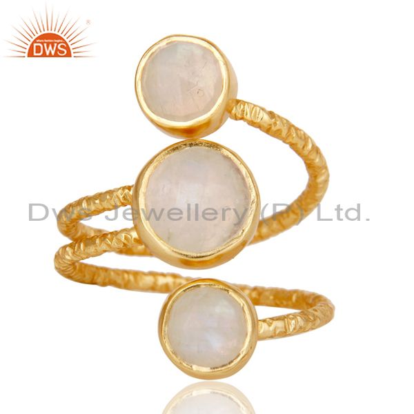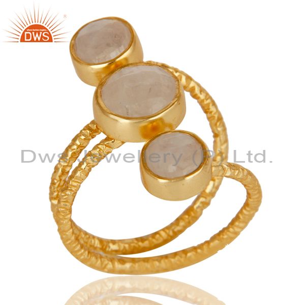 Rainbow Moonstone Sterling Silver Wire Design Ring with 18k Gold Plated