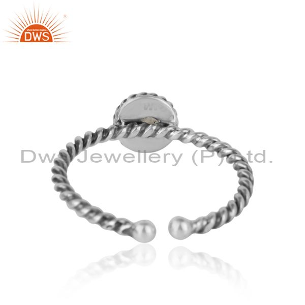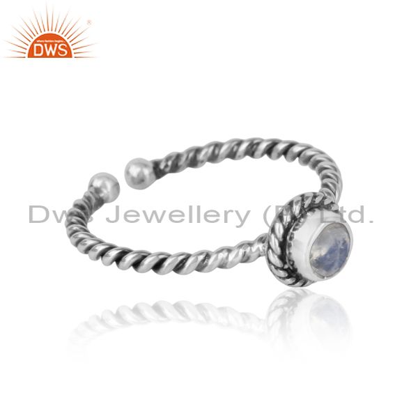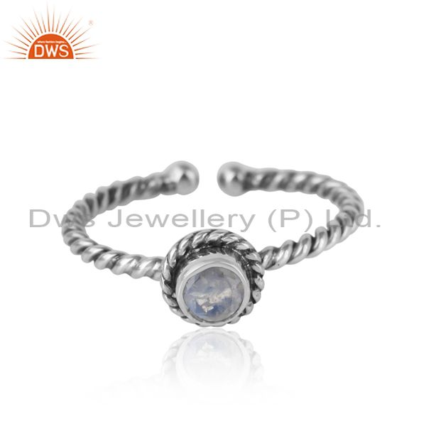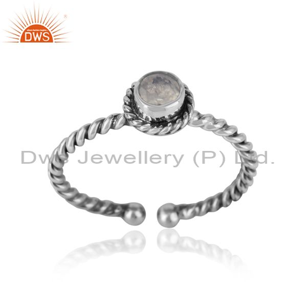 Rainbow Moonstone Twisted Handmade Designer Ring in Oxidized Silver 925