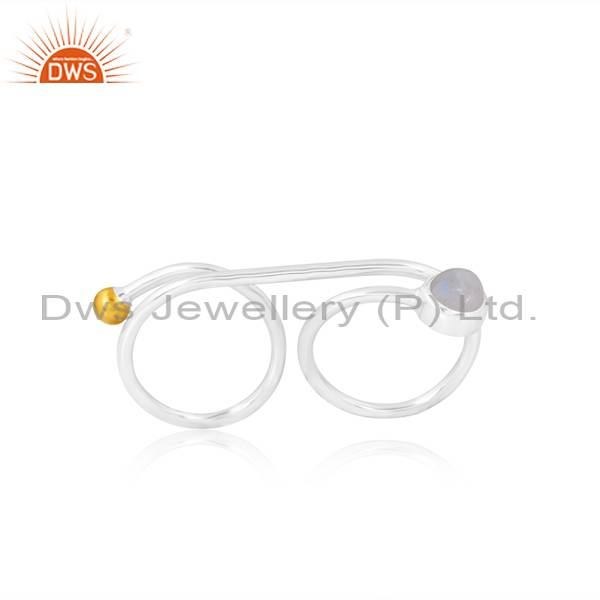Rainbow Moonstone Two Finger Ring - Uniquely Stunning Design
