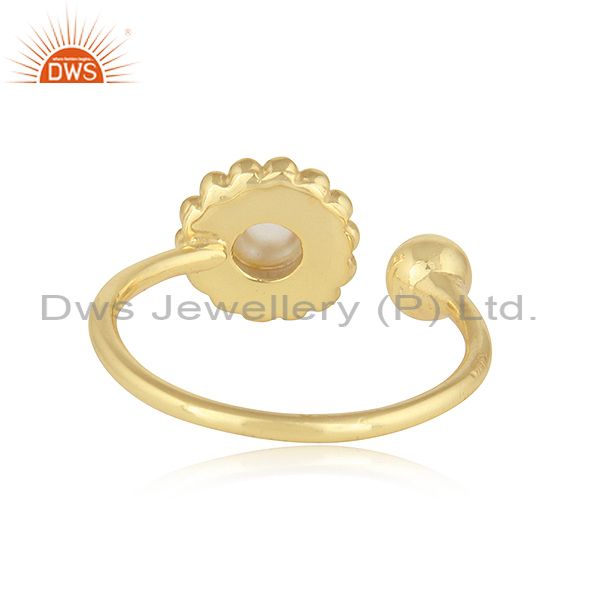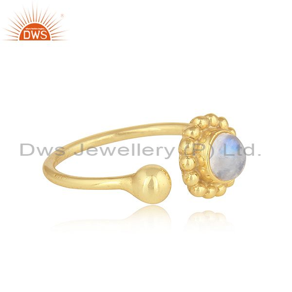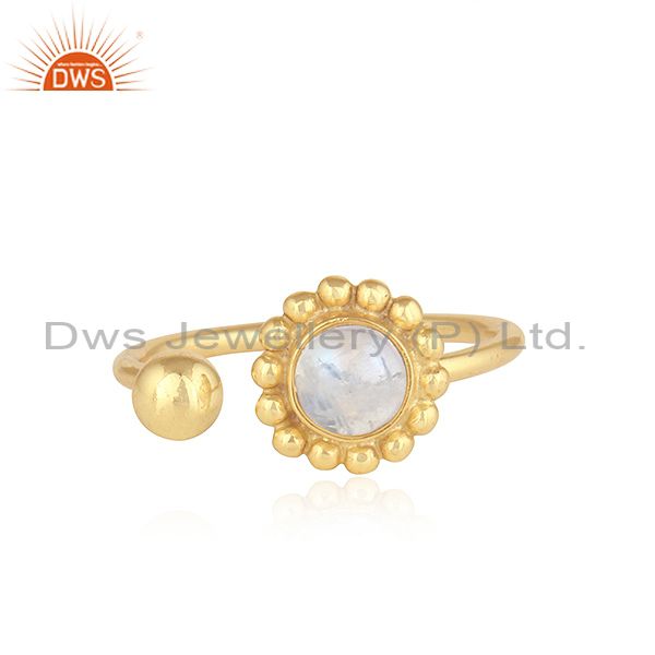 Rainbow Moonstone Womens Gold Plated 925 Silver Flower Design Rings