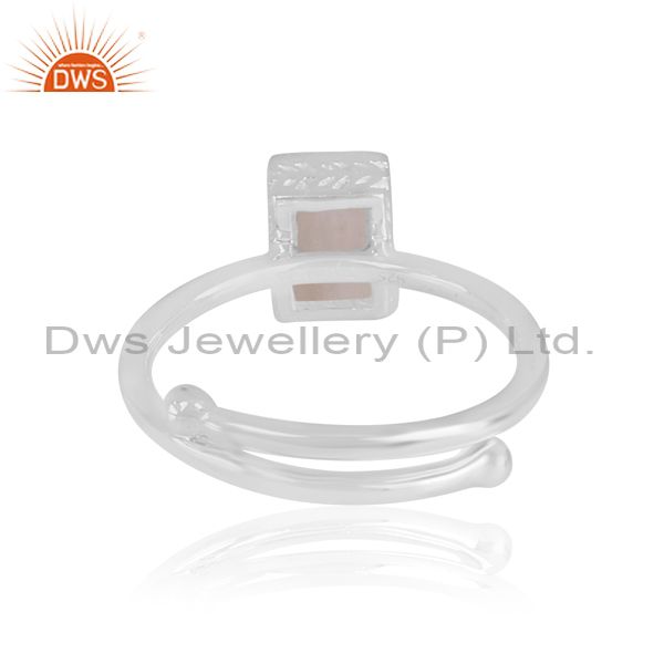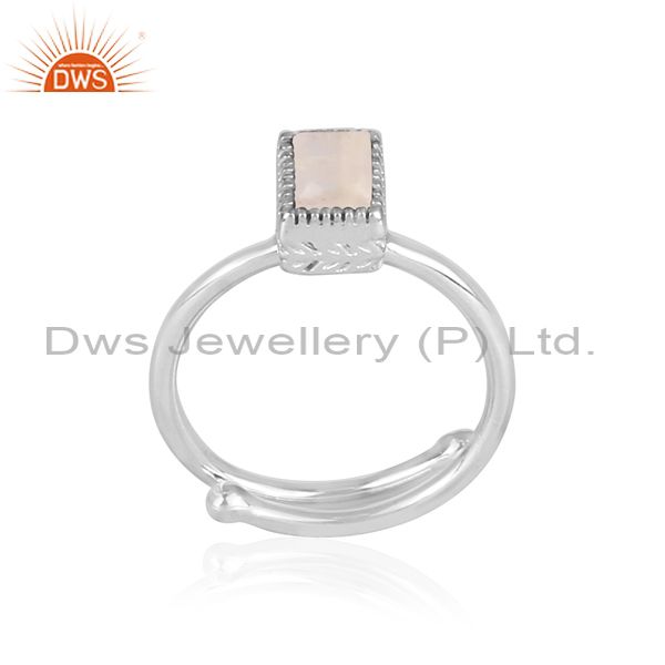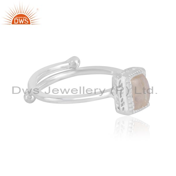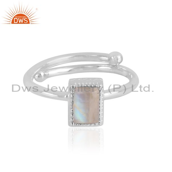 Rectangle cut rainbow moon stone set fine silver classy ring