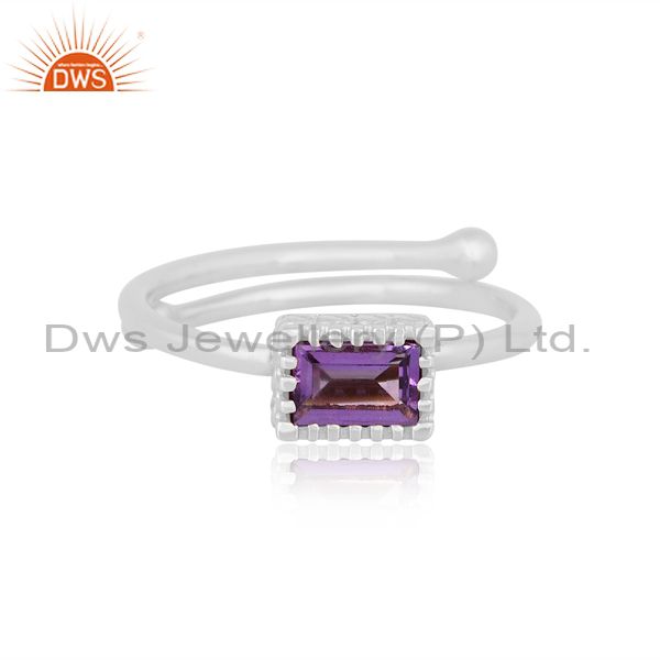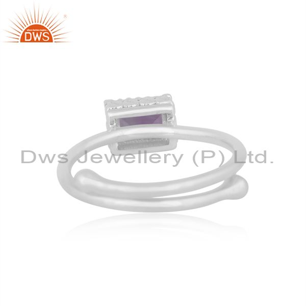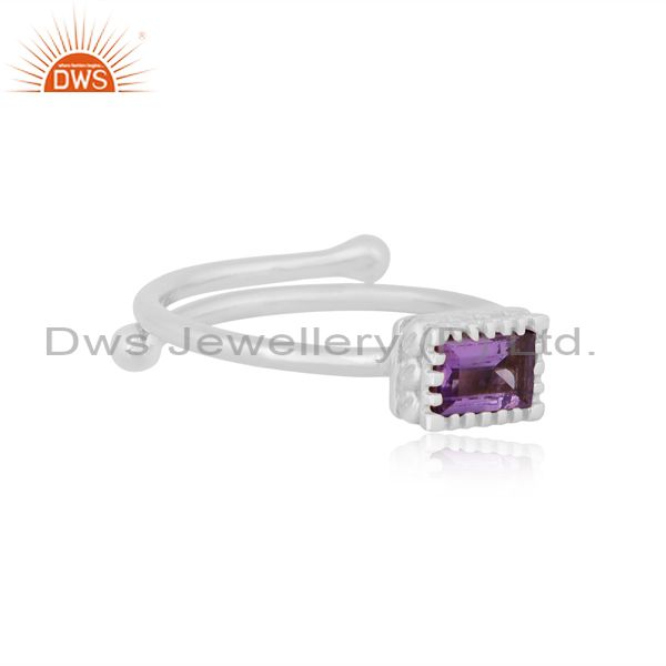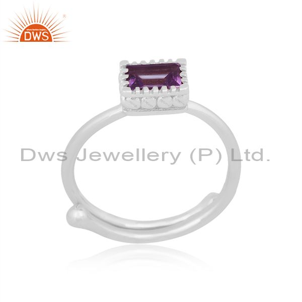 Rectangular Amethyst Set Fine 925 Silver Designer Crown Ring