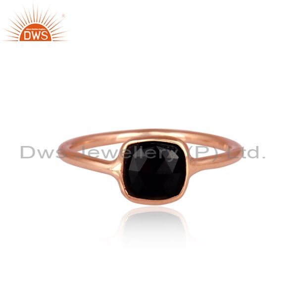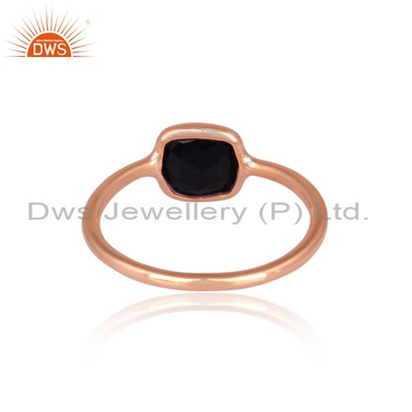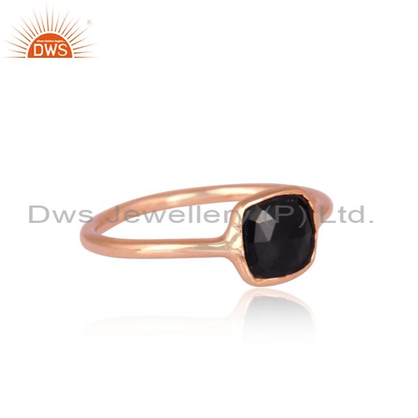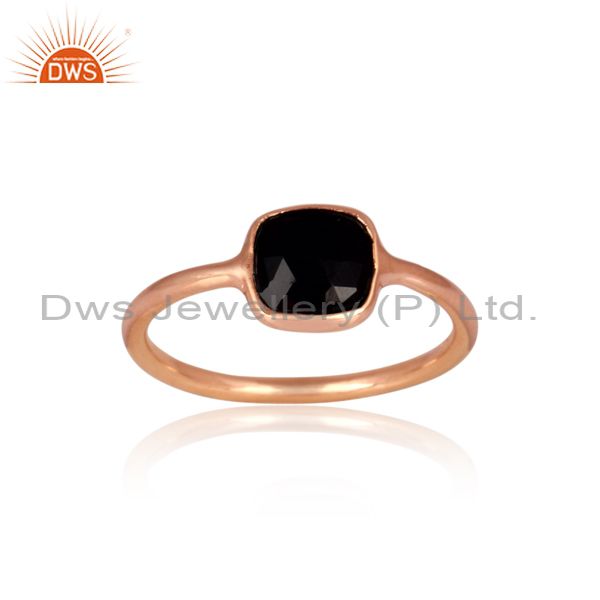 Rectangular Black Onyx Set Rose Gold On Silver Designer Ring