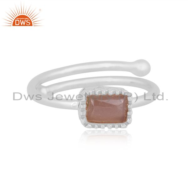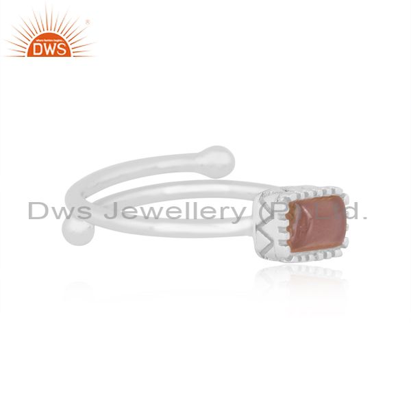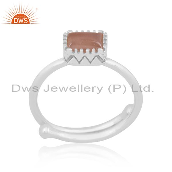 Rectangular Chocolate Moon Stone Fine Silver Designer Ring